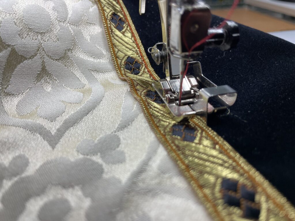 - Source and purchase all vestment-specific materials (fabric, galloon/trim, interlinings, interfacing, special threads)